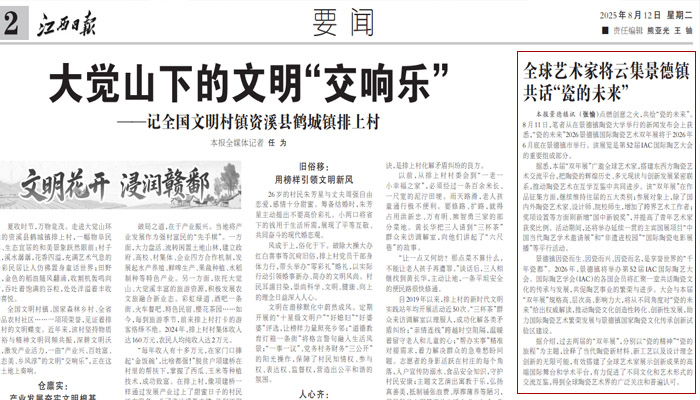 【江西日?qǐng)?bào)】全球藝術(shù)家將云集景德鎮(zhèn) 共話“瓷的未來(lái)”