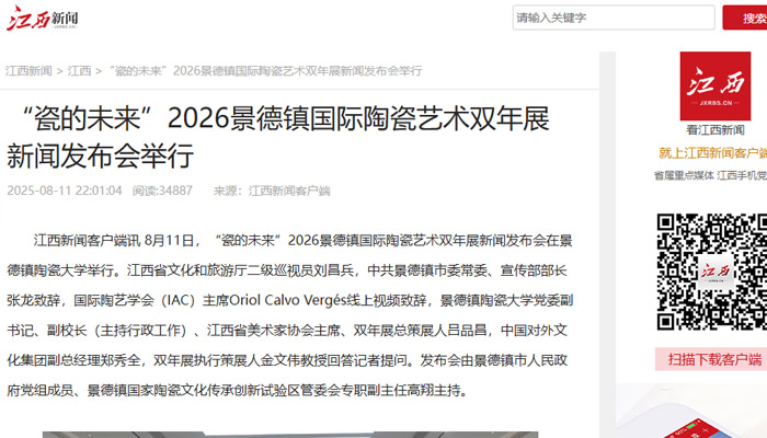 【江西教育電視臺(tái)】“瓷的未來(lái)”2026景德鎮(zhèn)國(guó)際陶瓷藝術(shù)雙年展將于明年6月底舉行